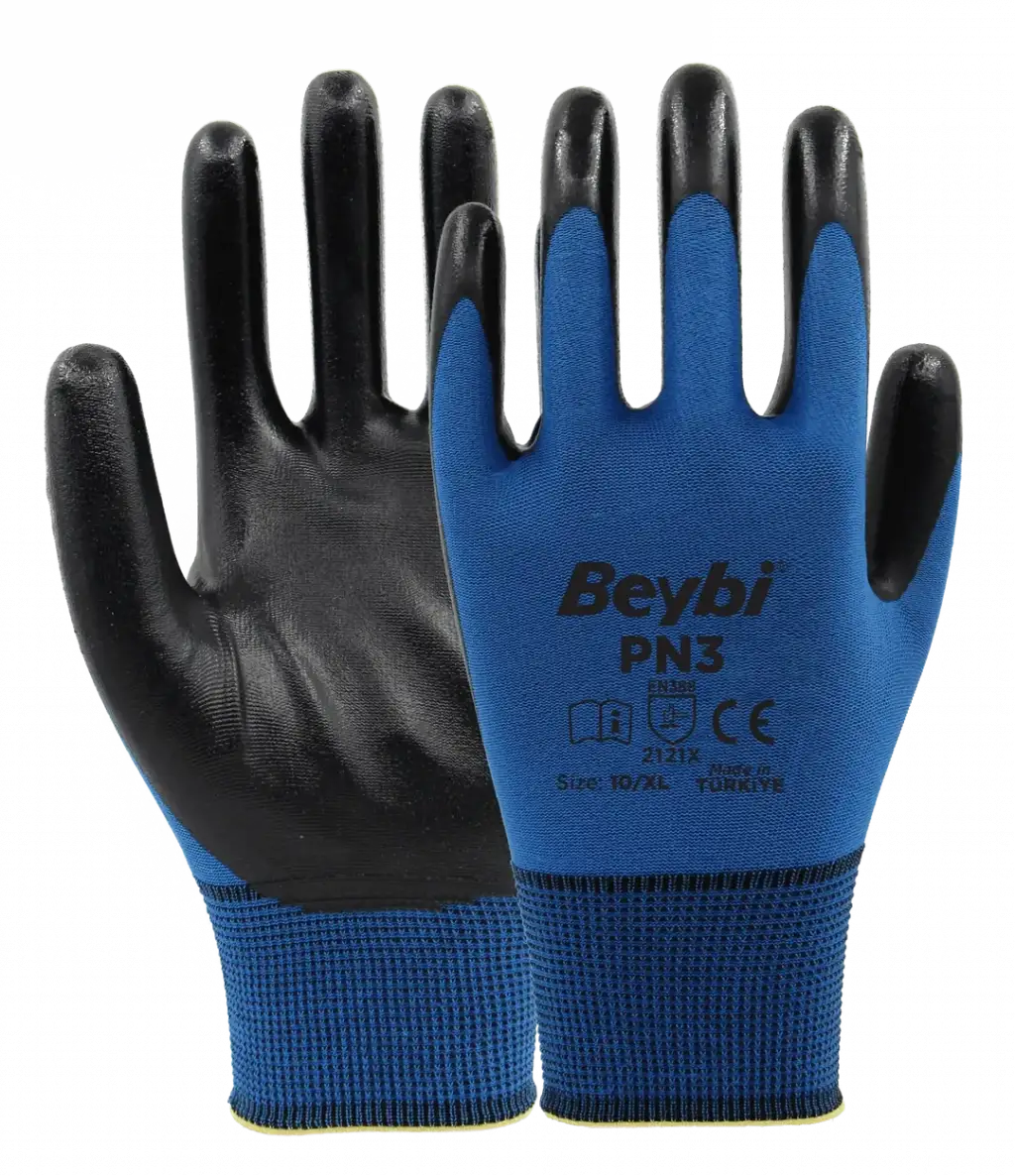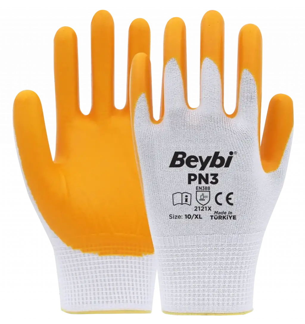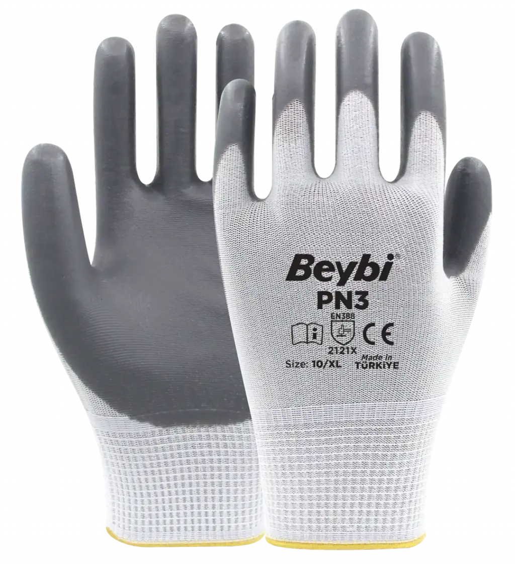 PN3 eldivenler ekstra ince ve hafif olması sayesinde üstün el becerisi ve konfor sağlar. Polyester örgü yapısı elinizin hava almasını sağlar, terletme yapmaz. Esnek konç yapısı bileğinize tam uyum sağlar. Aşınmaya karşı dayanıklıdır. Gıda İle temasa uygundur.