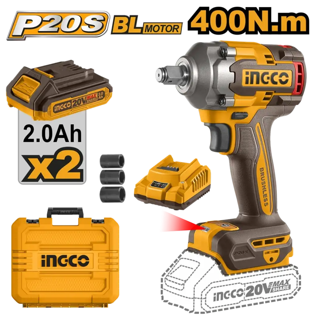INGACO ING-CIWLI2040E Li-ion Akülü Somun Sıkma ½’’ Kömürsüz Motor 2 Akülü