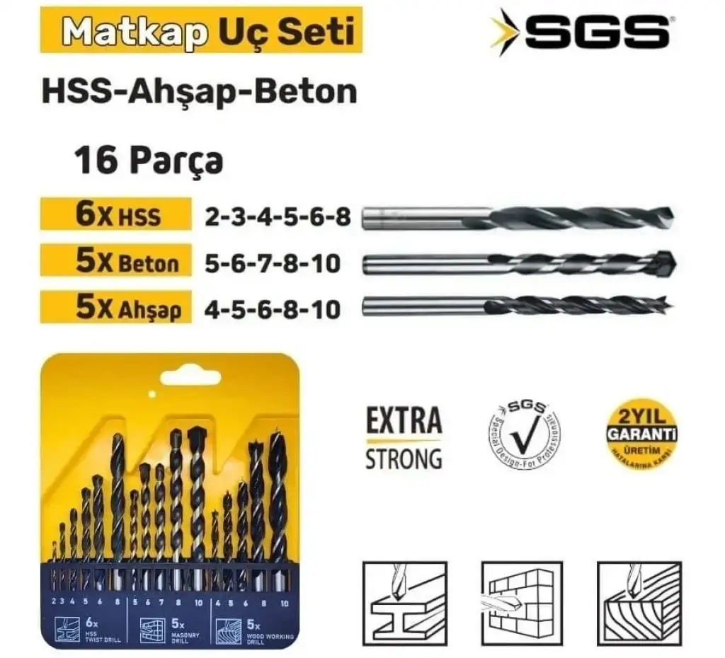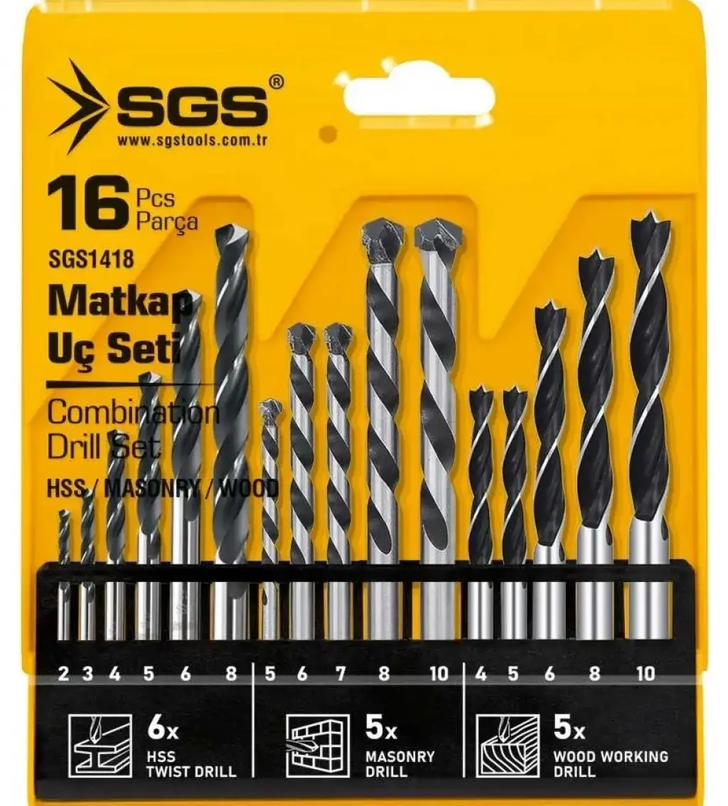 Ev, ofis ve atölyelerdeki farklı yüzey uygulamaları için eksiksiz bir çözüm arayanlara yönelik hazırlanan SGS 16 Parça Karma Matkap Ucu Seti , en çok ihtiyaç duyulan matkap uçlarını tek bir kutuda toplar. Ahşap, metal ve beton yüzeyler için ayrı ayrı optimize edilmiş 16 farklı uç sayesinde, her türlü montaj ve tamirat işini profesyonelce tamamlamanızı sağlar.
