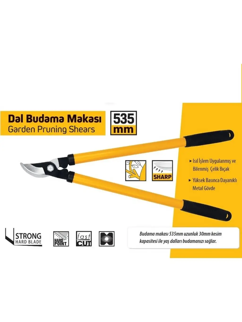 Optimum Kaldıraç Gücü: 21 inçlik sap boyu, fiziksel gücü bıçaklara maksimum oranda ileterek kalın dalların minimum eforla kesilmesine olanak tanır.