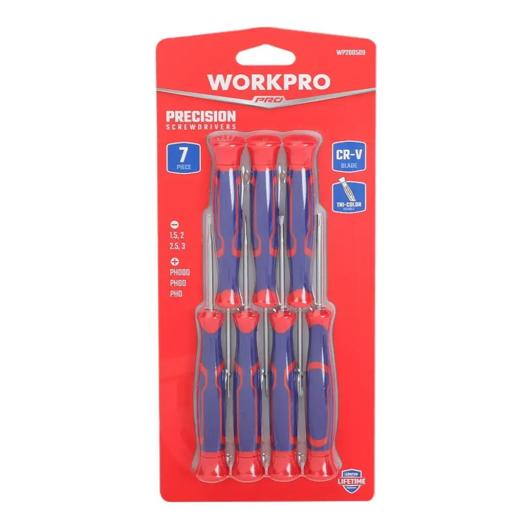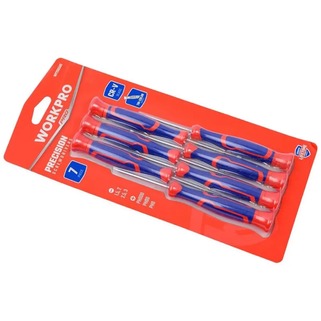 • WORKPRO WP200509 7 Parça Profesyonel CR-V Manyetik Hassas Tornavida Seti