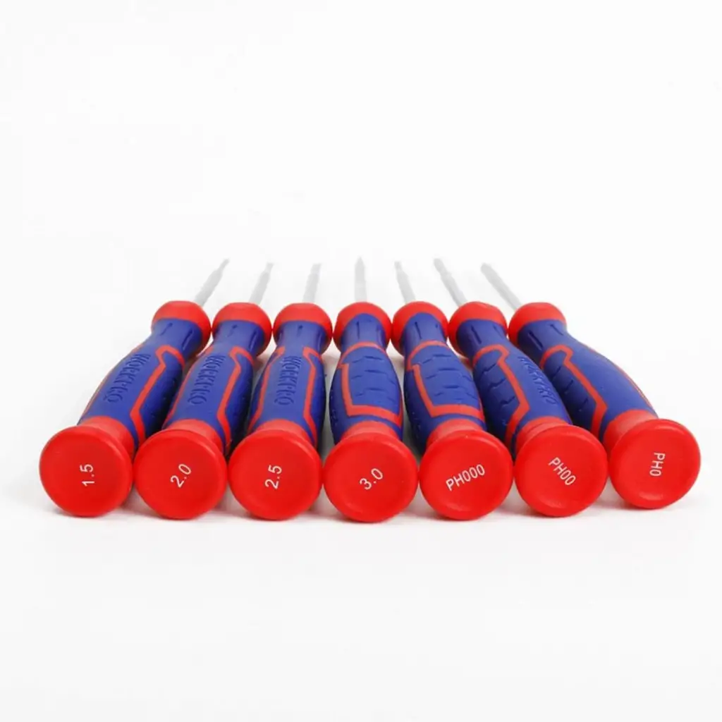 • Güçlü uçlara sahip 7 Parçalı Tornavida Seti, geliştirilmiş dayanıklılık ve rahat kavrama sağlar.