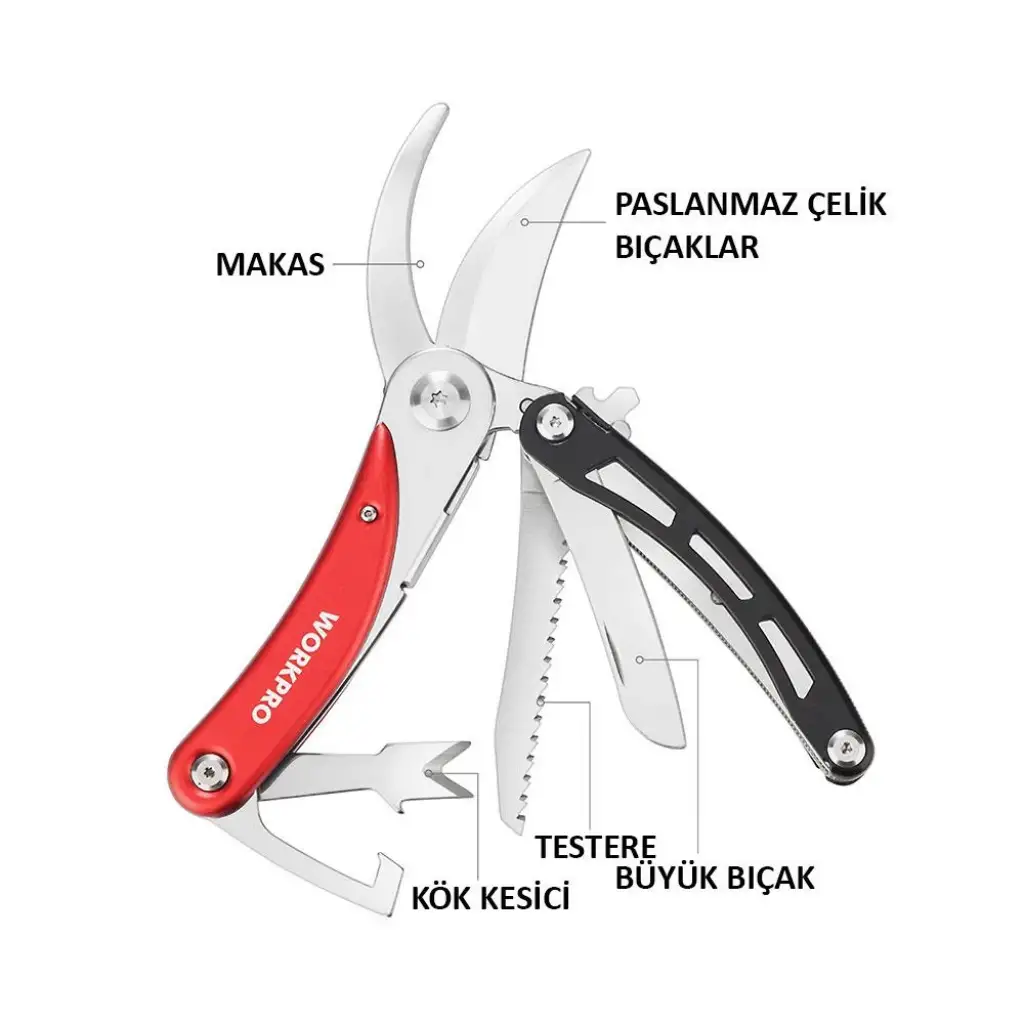 • Budama makası, dal budama testeresi, bıçak, kök kesici, kanca gibi birçok kullanım alanı sayesinde tek bir alet ile 4 farklı kullanım sağlar.